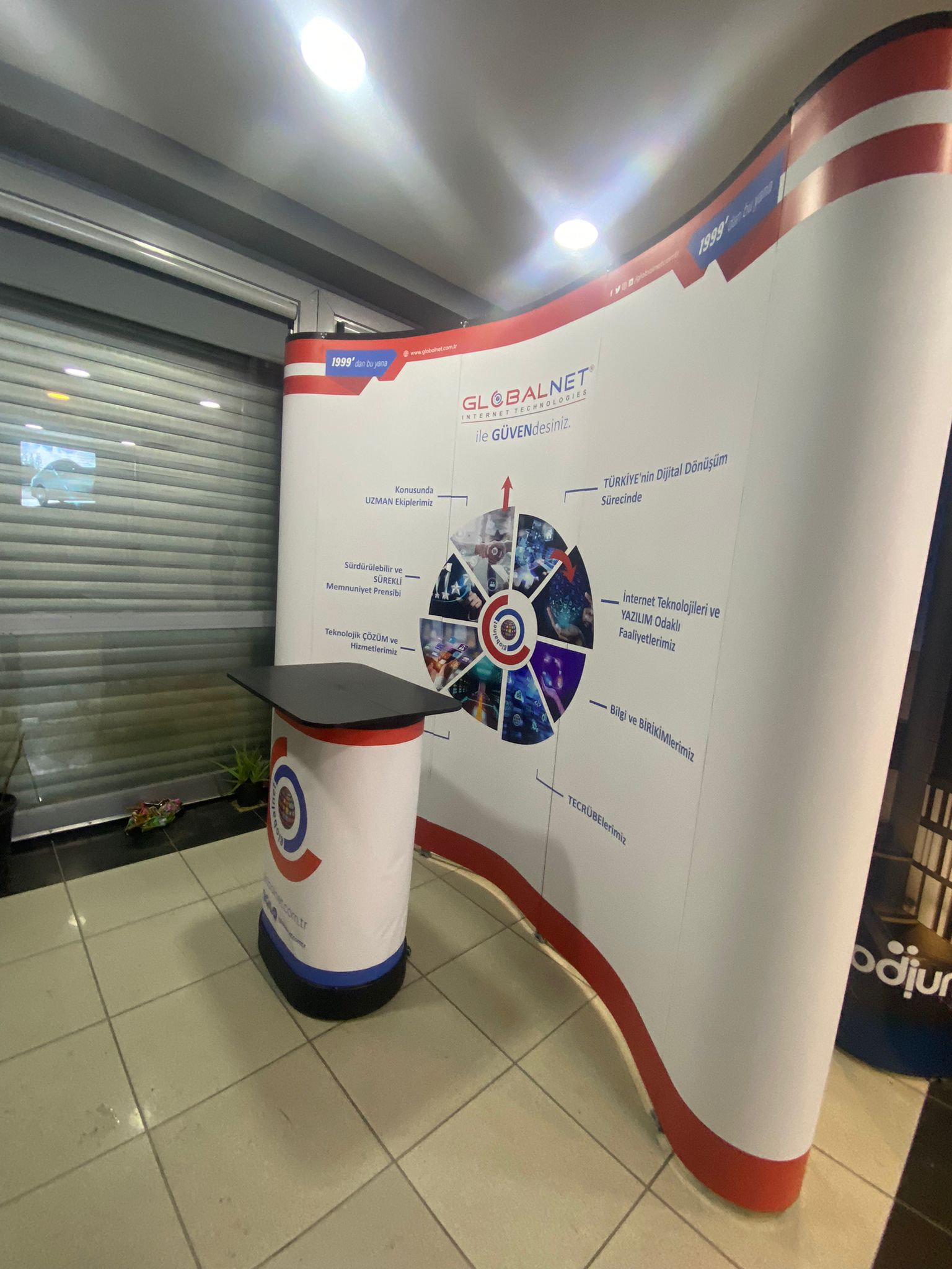 Özellikle Ankara portatif stand sistemleri arasında yer alan bu model, teknik bilgi gerektirmeden kullanılabilir. Büyük olmasına rağmen pratik kurulum sistemi sayesinde fuar ve etkinliklerde zaman kaybı yaşanmaz.
